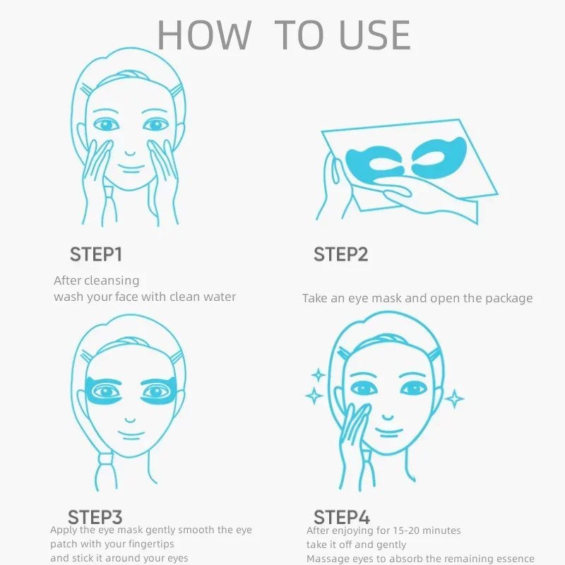 STEP3ïŒApply the eye mask gently smooth the eye patch with your fingertips and stick it around your eyes